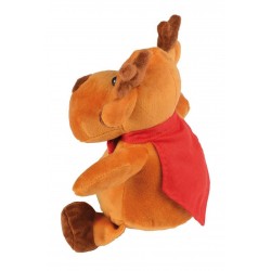 EDDY plüss szarvas : puha bundával és piros színű emblémázható ruhadarabbal, a ruha külön csomagolva