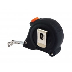 BUILDER mérőszalag behúzó mechanizmussal, zárral, klipsszel a hátoldalán, gumírozott kivitel, 5 m-es