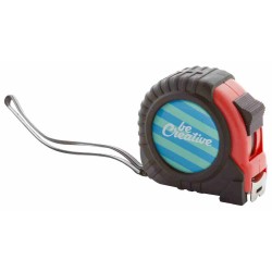 Műanyag mérőszalag fékező funkcióval, fém klipsszel és kulcskarikával, 5 m.