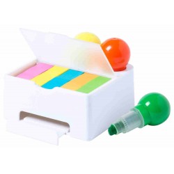Jelölőcsík szett áttetsző tartóban, 3 színű szövegkiemelővel, öntapadós jegyzetlappal (100 db 12 x 38 mm) és mobiltelefon tartóval.