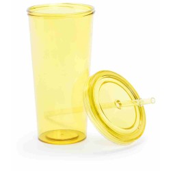 Átlátszó, színes műanyag pohár, megegyező színű fedéllel és szívószállal, 750 ml.