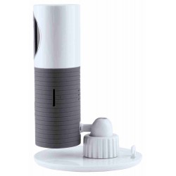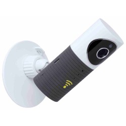 HD felbontású okoskamera Wi-Fi kapcsolattal, hangszóróval és mikrofonnal. További funkciók: mozgásérzékelő, éjszakai és automatikus felvétel. USB töltőkábelt tartalmaz.