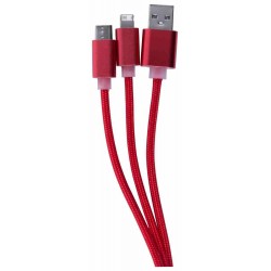 Alumínium USB töltőkábel kulcstartóval. Mikro USB, USB Type-C és Lightning csatlakozókkal.