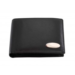 DAX bőr pénztárca becsúsztatós zsebekkel a belsejében kártyák számára, 1 hálós zseb személyigazolvány kártyának, 2 nagy zseb jegyzeteknek, 1 zseb az aprópénznek, amely patenttal záródik, ovális fém lapocskával az embléma számára