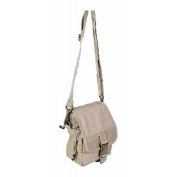 Műanyag csatos oldaltáska, 2 db cipzáras rekesszel, karabineres vállpánttal. Anyaga: 600D poliészter.