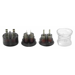 Univerzális úti adapter, márkajelzéssel ellátott nylon tasakkal. A tasak mérete: 140×100 mm. Fekete kartondobozban szállítjuk. André Philippe márkatermék.