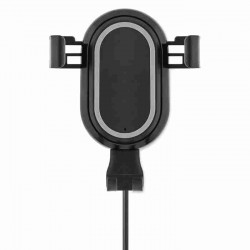 Autós vezeték nélküli töltő és telefontartó, logó megvilágítással. Csatlakoztassa az eszközt és helyezze rá az okostelefont. DC 5V/2.0A kimenet. Qi kompatibilis készülékekhez (újabb Android, iPhone® 8, 8S, X, stb.).