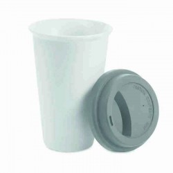 Duplafalú kerámia úti bögre szilikon tetővel. Mikróba nem tehető. Űrtartalom: 275 ml. A tamponnyomás nem ellenálló a mosogatógéppel szemben. A kerámia transzfernyomás ellenálló a mosogatógéppel szemben.