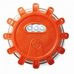 Autós vészjelző fény 5 LED-del. Világítási módok: egyenletes, csak a tetején, forgó, pislákoló és villogó. Ki- és bekapcsolás. Részben gumírozott, átlátszó ház. Mágnessel és összecsukható akasztókkal az alján. Elem nélkül szállítjuk.